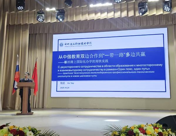 本次论坛分“新时代交通领域发展中的新挑战”“人工智能在交通科学技术领域的应用与前景”和“国际化交通人才培养的实践路径”三个主题。在23日的全体大会上,倪居代表联盟中方副主席单位作了“从中俄教育双边合作到‘一带一路’多边共赢——新丝路上国际化办学的郑铁实践”主旨报告。他指出,加强中俄两国在交通教育和科学领域的联系与合作有助于培养具有国际视野的高技能人才。我校将持续推动双方合作走深走实,为服务“一带一路”建设提供坚实的智力支撑与人才保障。